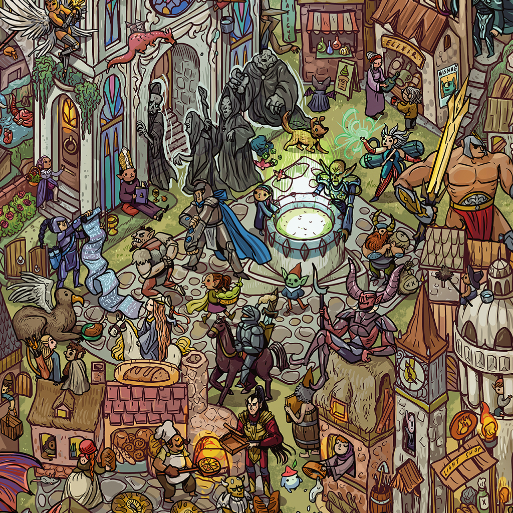 Yes, that's right. It's a five-card, Borderless panorama by Marija Tiurina, and it's jam-packed with hidden Magic and Ravnica references. Please, can you find Fblthp on every card?